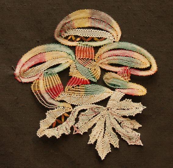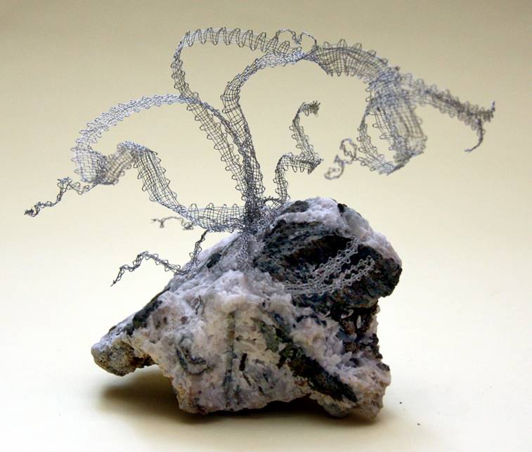 und die Nachbildung einer Silberlocke, geklöppelt aus Edelstahldraht.