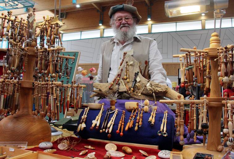 Klöppel aus den unterschiedlichsten Holzarten gezeigt. Außergewöhnliche Klöppel, jedes Paar ein Unikat, wurden von Laurenz Mayer seinen Kundinnen
