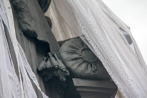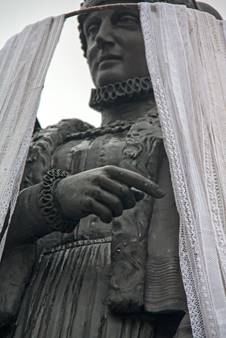 3300 geklöppelten Bändern am Barbara-Uthmann-Denkmal. Zwischen